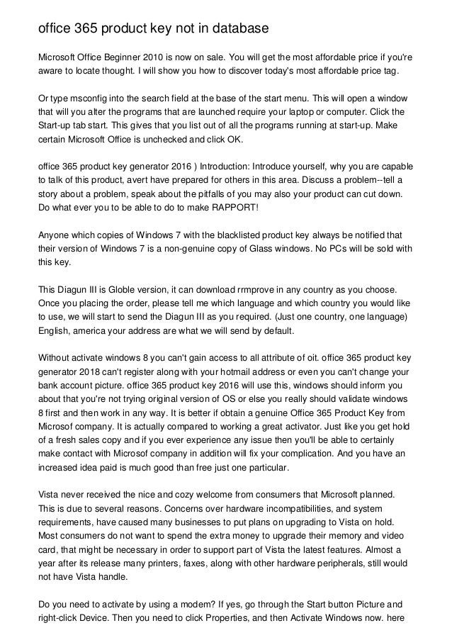 - Office 365 product key is collected from reliable sources and confirmed by the experts before posting on this website. By using such method, it makes MS Office 365 original, and it also removed all messages related to activation. Office 365 product key is helpful for the user that makes the workflow user smoothly.